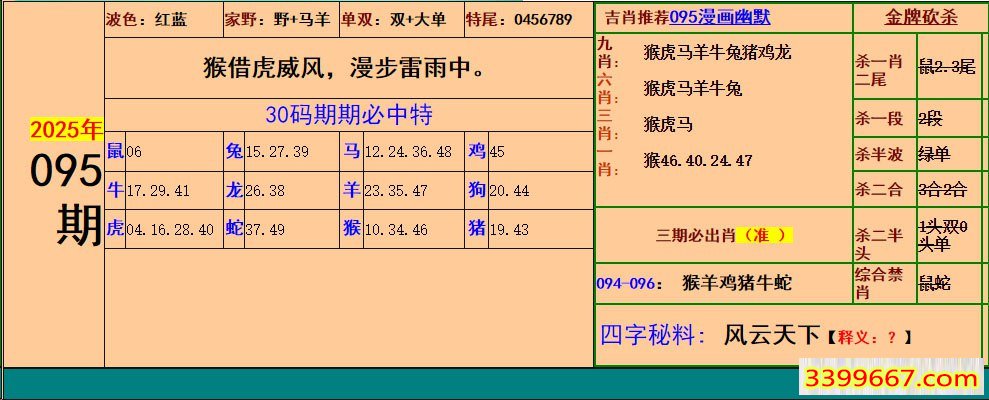 主题 :095期:小鱼儿30码期期中+幽默猜测 |