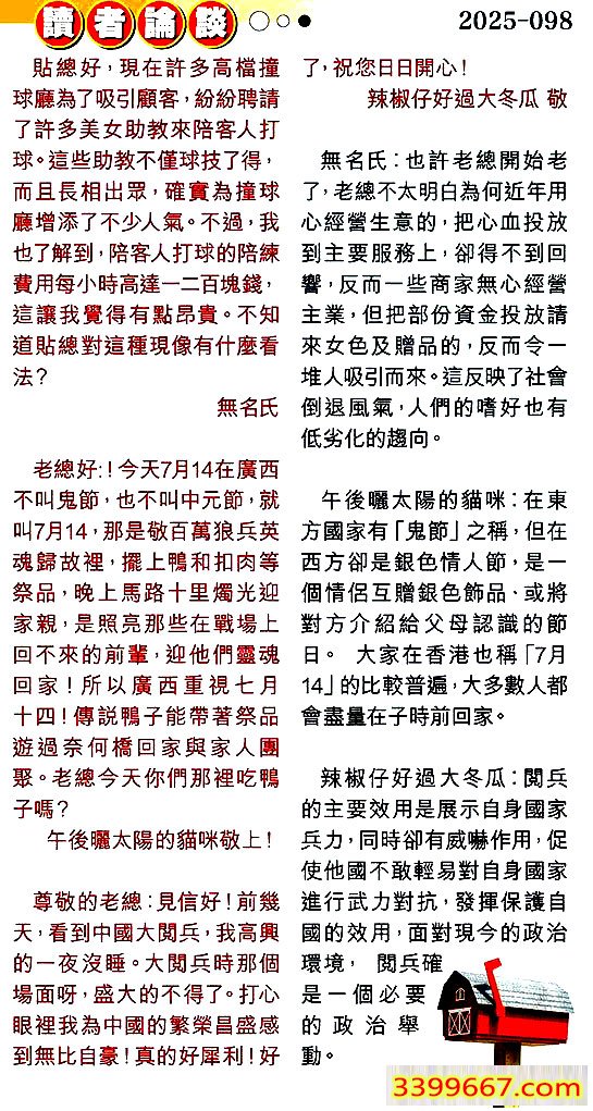 主题 :098期:彩民推荐〖貼信讀者論壇〗 |
