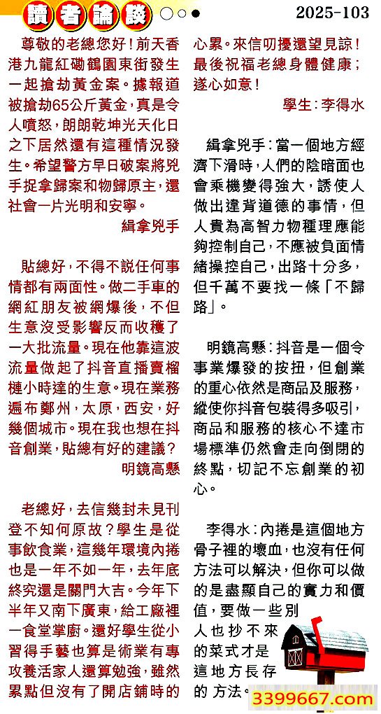 主题 :103期:彩民推荐〖貼信讀者論壇〗 |