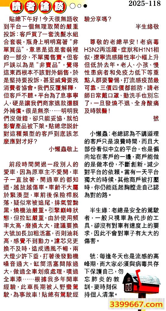 | 主题 :118期:彩民推荐〖貼信讀者論壇〗 |