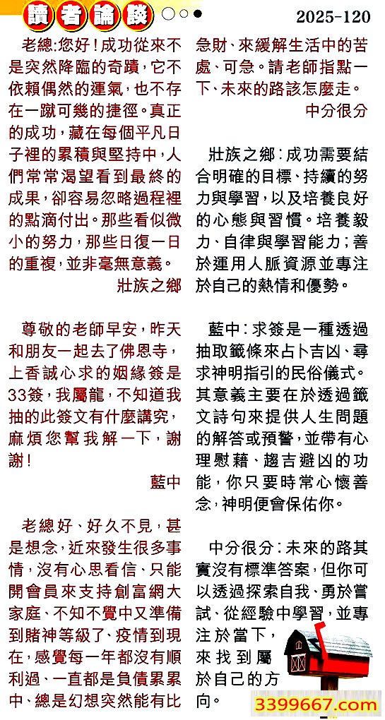 | 主题 :120期:彩民推荐〖貼信讀者論壇〗 |