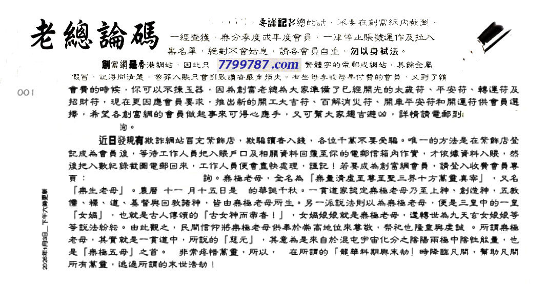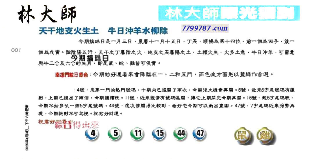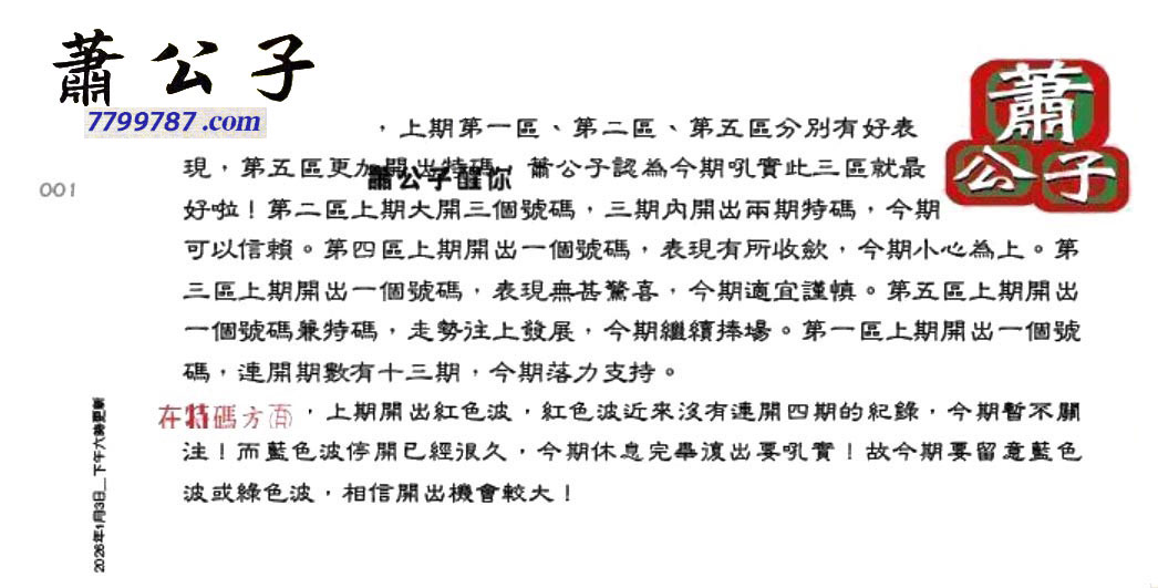 | 主题 :001期:六合皇金句/老总论码/萧公子/林大师/五行夺码/老总信箱截 |