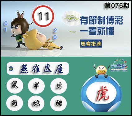 076期正版彩图挂:11 爆:虎 挂牌成语:燕雀处屋 挂牌出肖:鼠羊虎鸡蛇猪