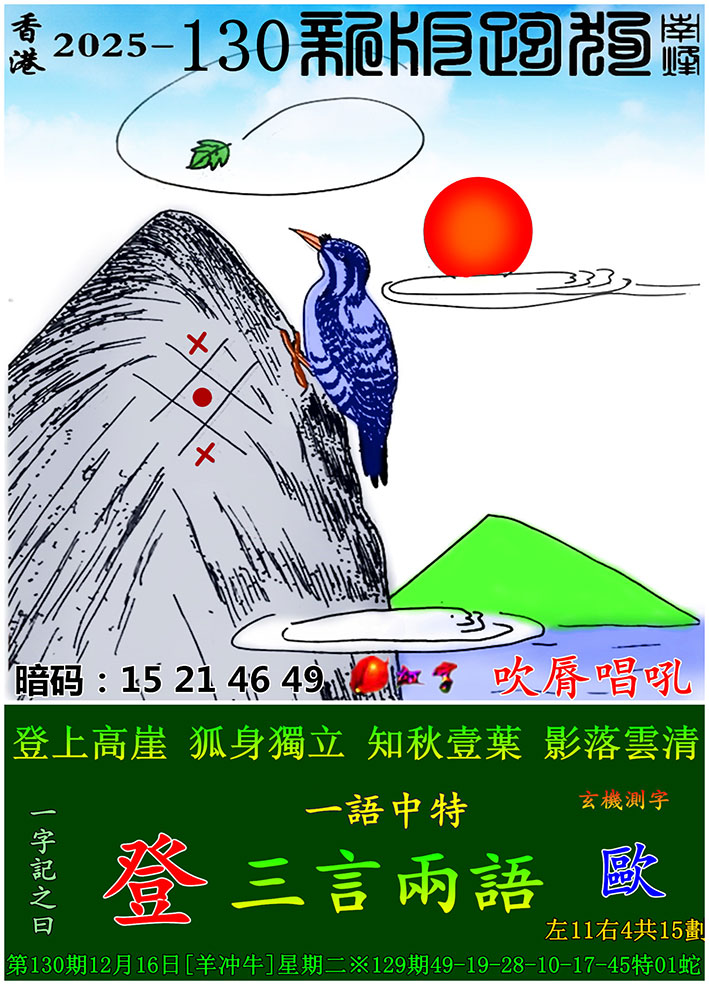 主题 :130期:新版跑狗一字記之曰【登】 玄機測字:【歐】