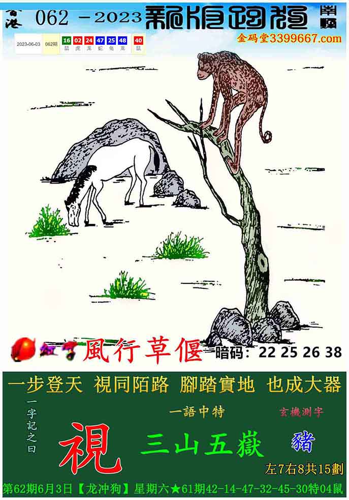 | 主题 :005期:新版跑狗一字記之曰【視】 玄機測字:【群】 |