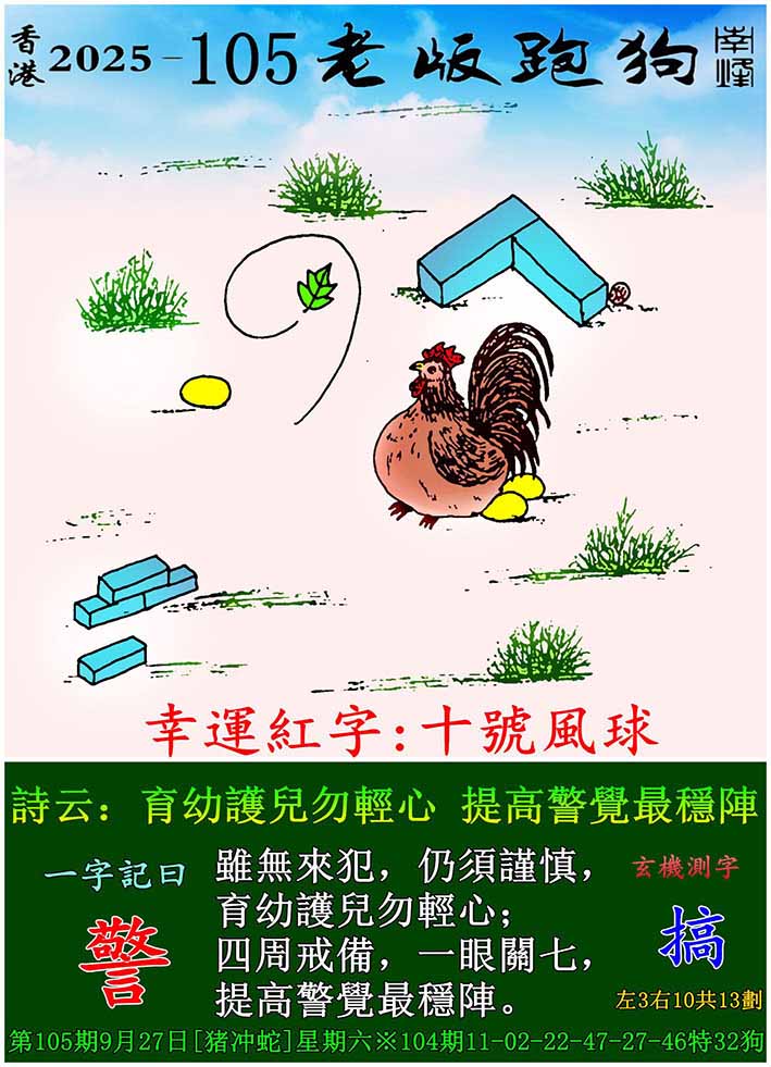 主题 :105期老版跑狗一字記之曰:【警】 玄機測字:《搞》 |