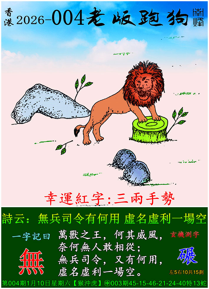 | 主题 :004期老版跑狗一字記之曰:【無】 玄機測字:《碾》 |