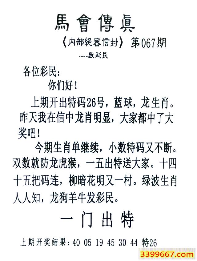 | 主题 :067期:首发推荐:≮馬會傳眞≯→(香港正版) |