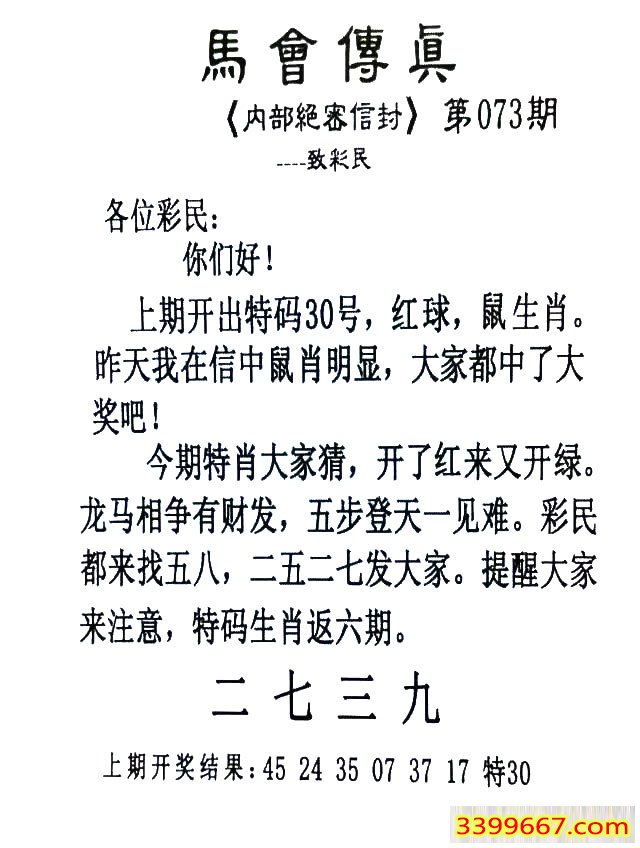 | 主题 :073期:首发推荐:≮馬會傳眞≯→(香港正版) |