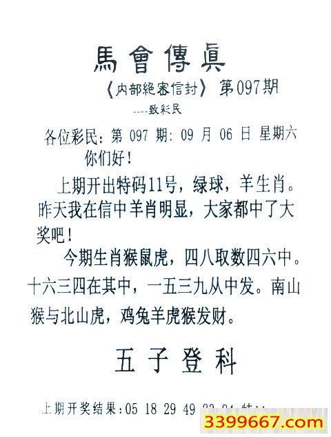 | 主题 :097期:首发推荐:≮馬會傳眞≯→(香港正版) |