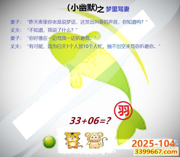 | 主题 :104期:小鱼儿30码期期中+幽默猜测 |