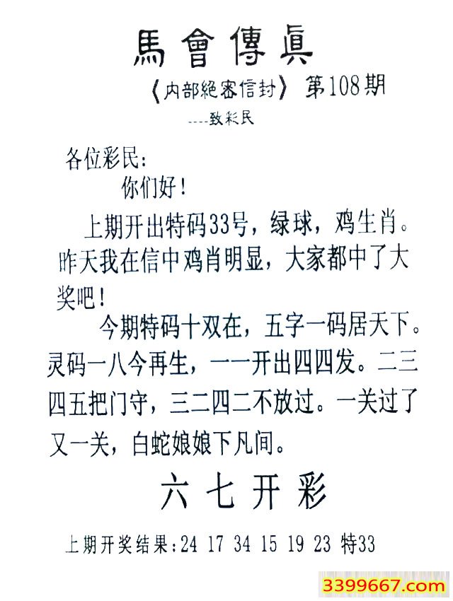 主题 :108期:首发推荐:≮馬會傳眞≯→(香港正版) |