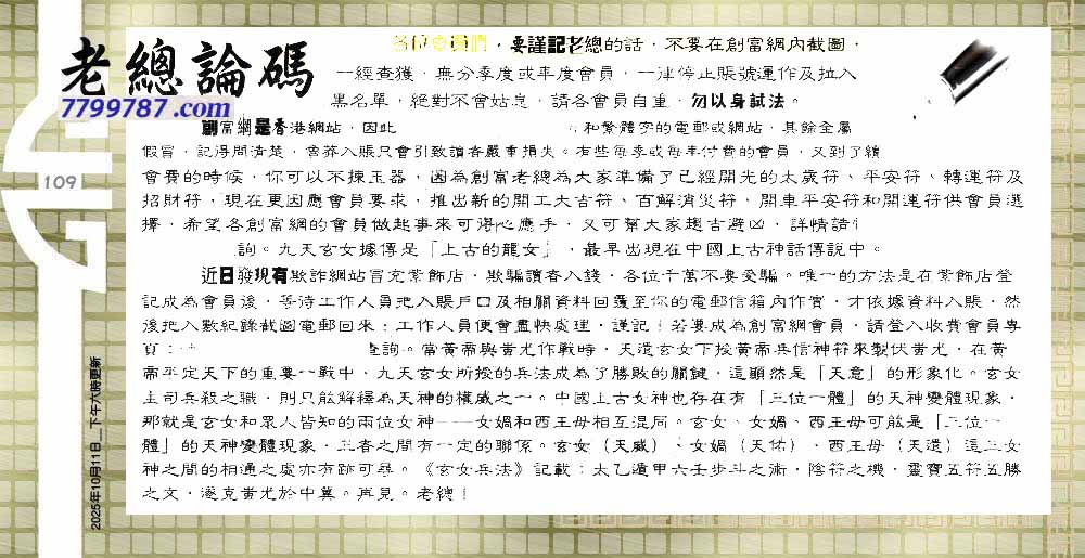 主题 :109期:六合皇金句/老总论码/萧公子/林大师/五行夺码/老总信箱截 |