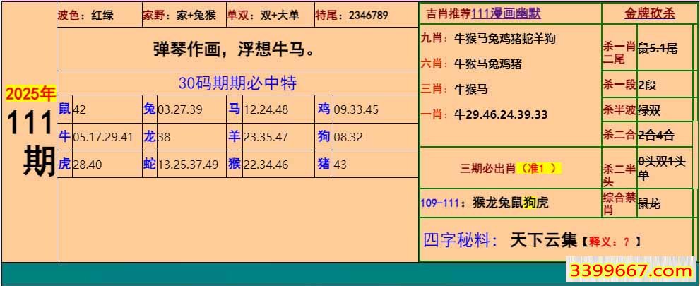 主题 :111期:小鱼儿30码期期中+幽默猜测 |