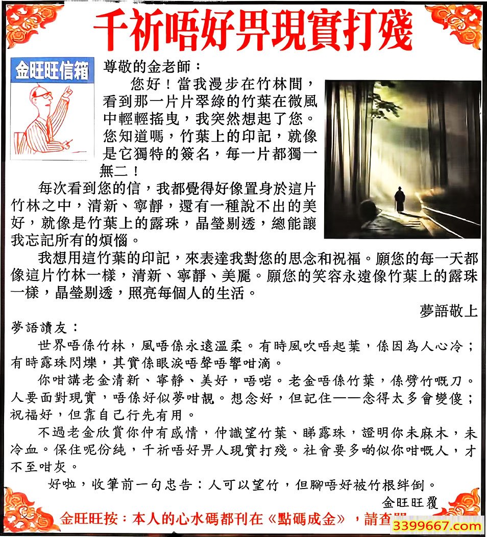 112期:金旺旺信箱彩民推荐→→《千祈唔好畀現實打殘》