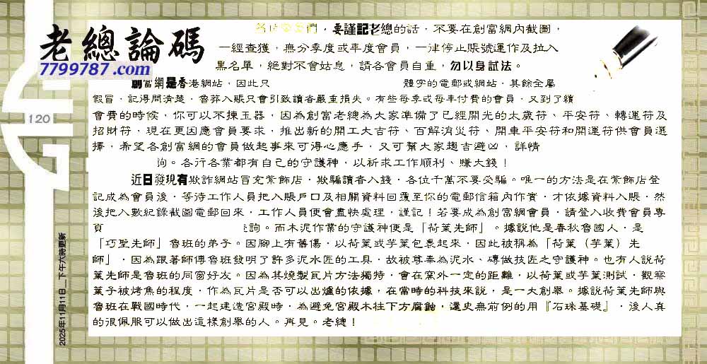 | 主题 :120期:六合皇金句/老总论码/萧公子/林大师/五行夺码/老总信箱截 |