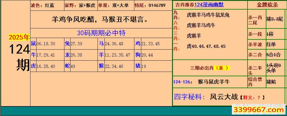 | 主题 :124期:小鱼儿30码期期中+幽默猜测 |
