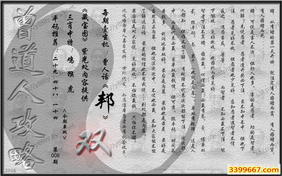 | 主题 :008期藏寶圖 新:清晓起来无个事 老:自说孤舟寒水畔 禁:牛 禁:4尾 |