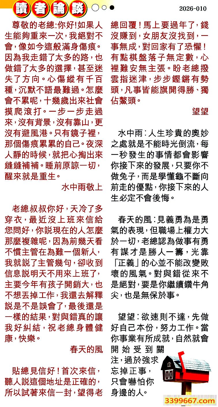 | 主题 :010期:彩民推荐〖貼信讀者論壇〗 |