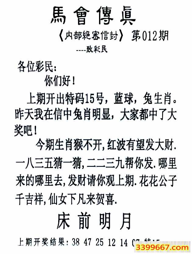 012期:首发推荐:≮馬會傳眞≯→(香港正版)