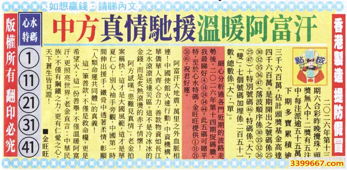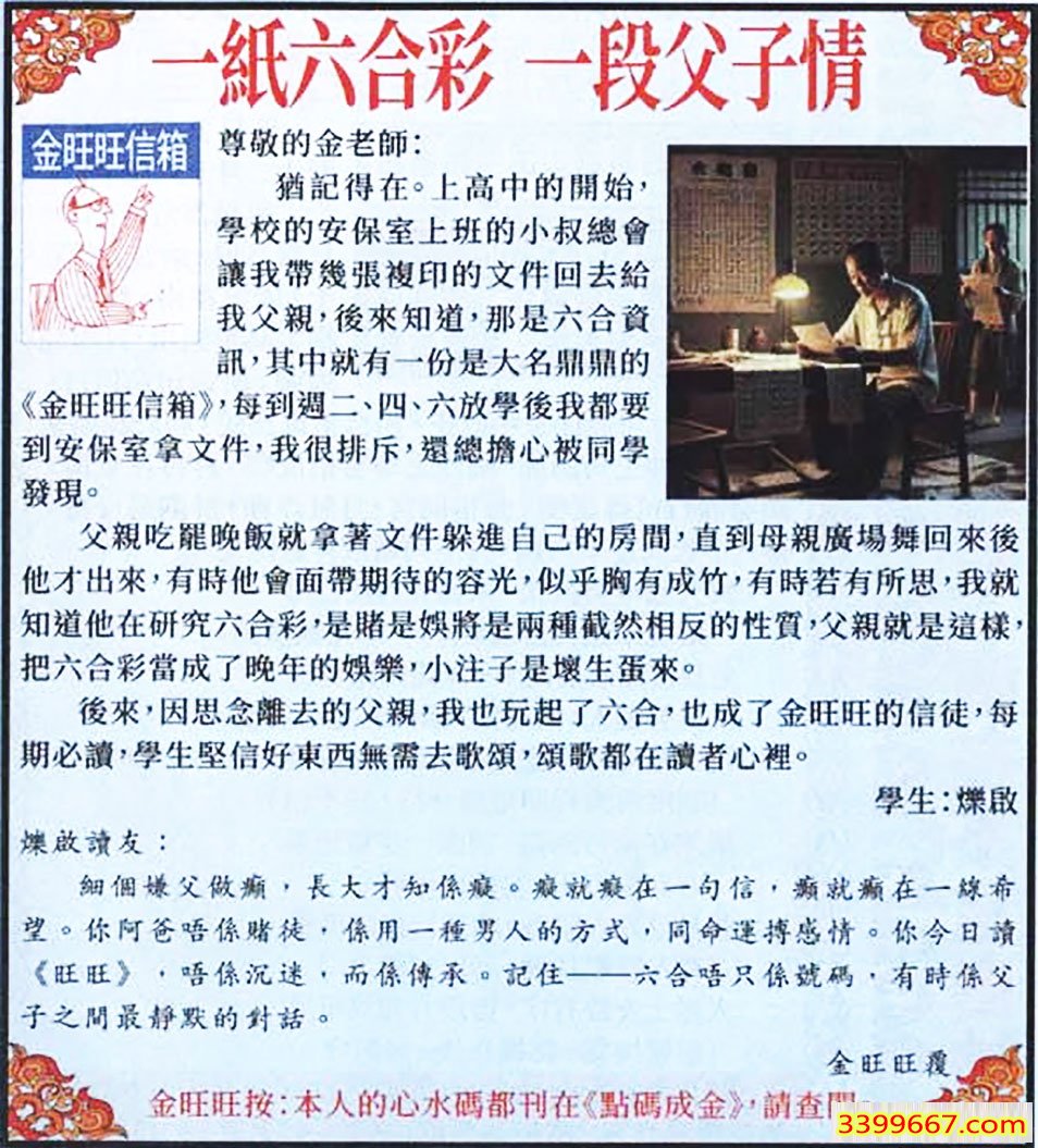 | 主题 :014期:金旺旺信箱彩民推荐→→《一紙六合彩 一段父子情》 |