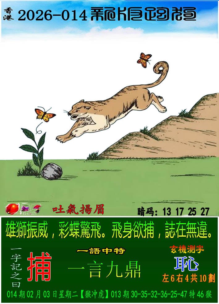 014期:新版跑狗一字記之曰【捕】 玄機測字:【恥】