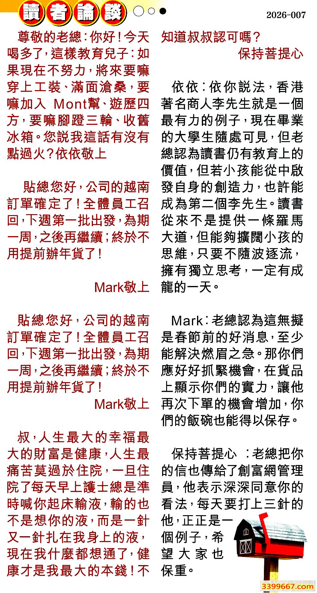 | 主题 :007期:彩民推荐〖貼信讀者論壇〗 |
